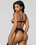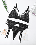Set capricho. atractivo set liguero de tres piezas color negro.